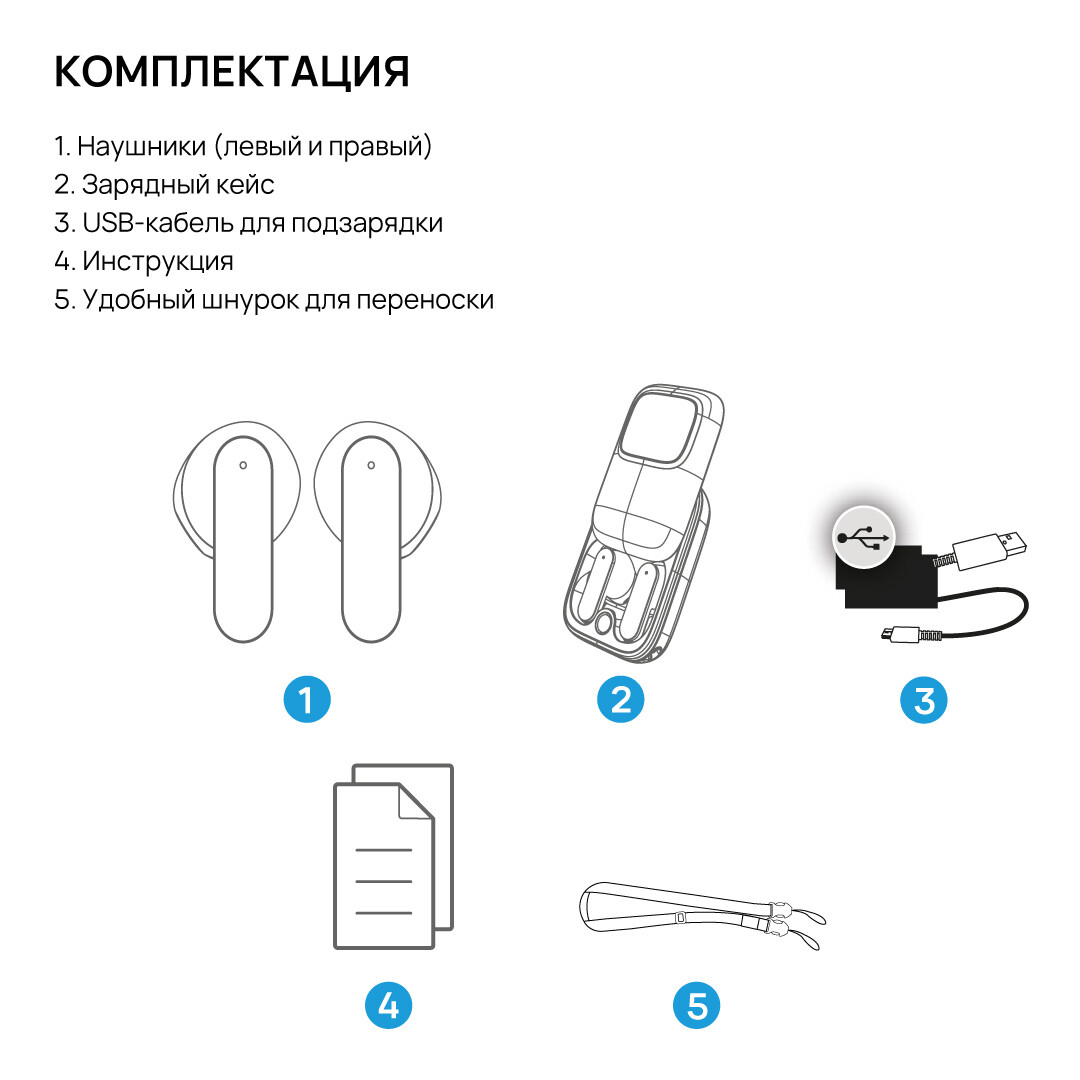Лёгкие эргономичные беспроводные наушники TWS обеспечивают насыщенное и чистое звучание.