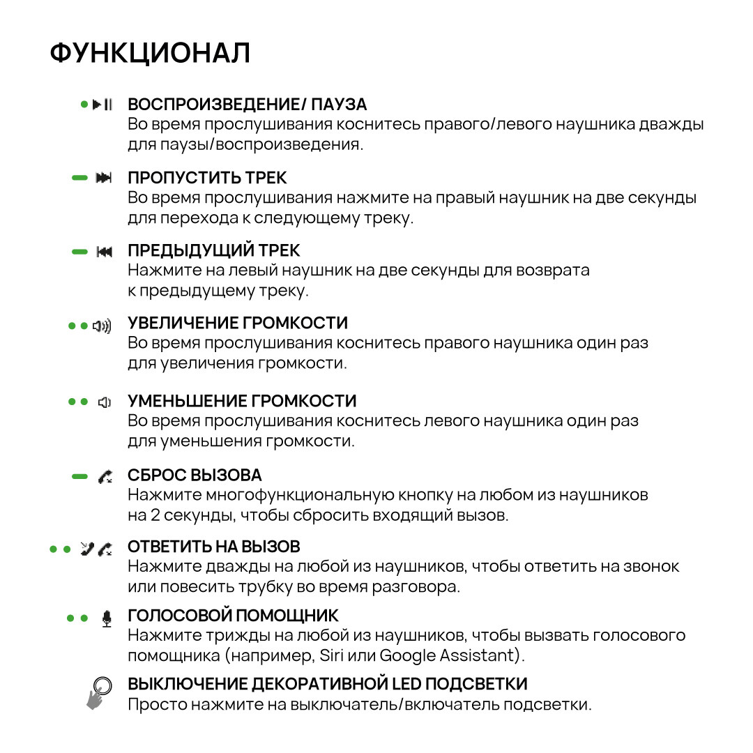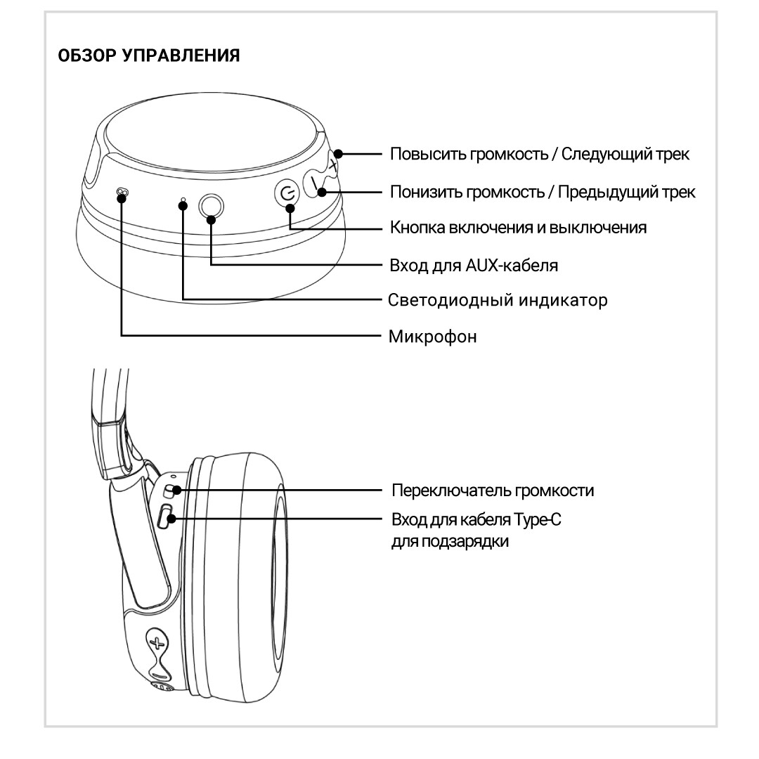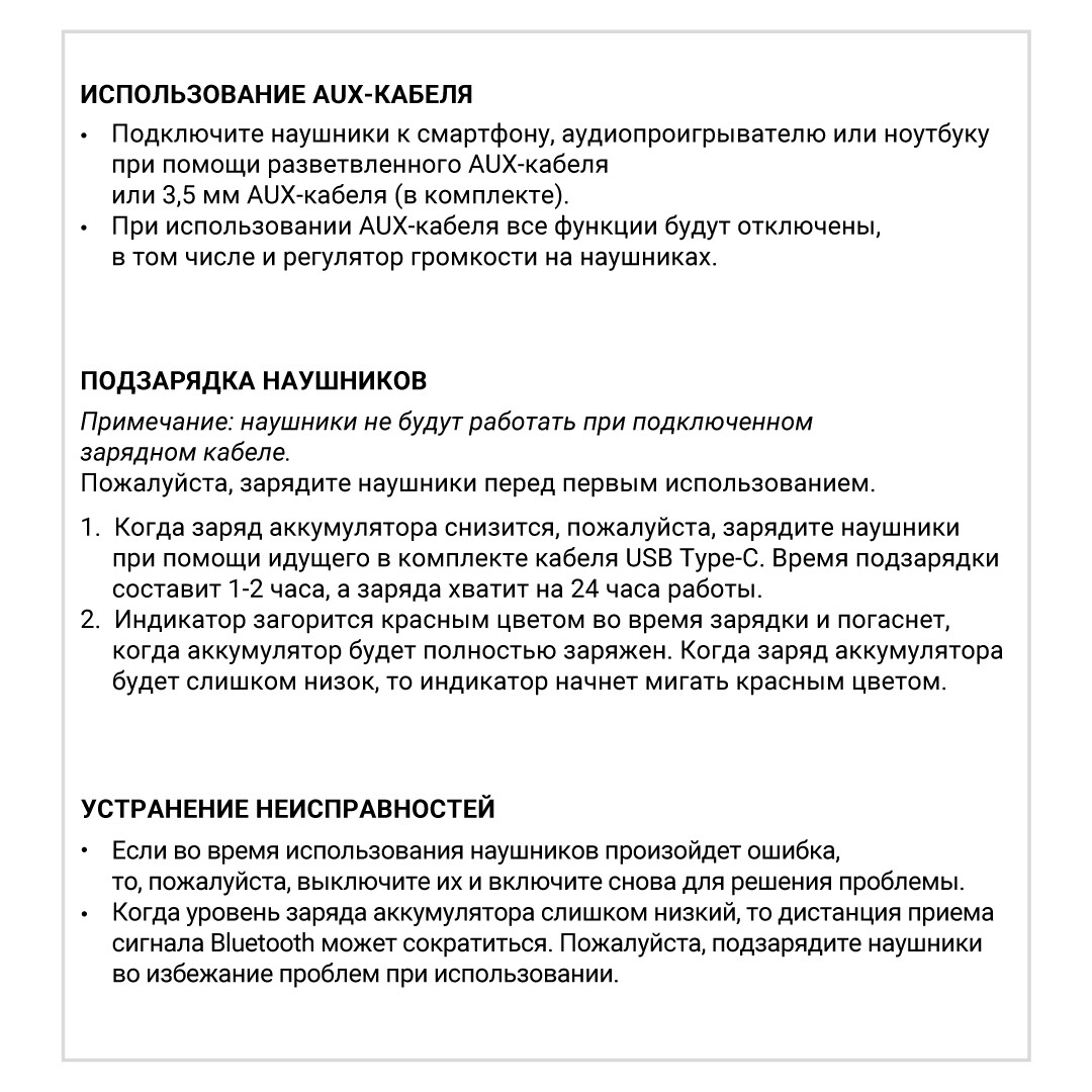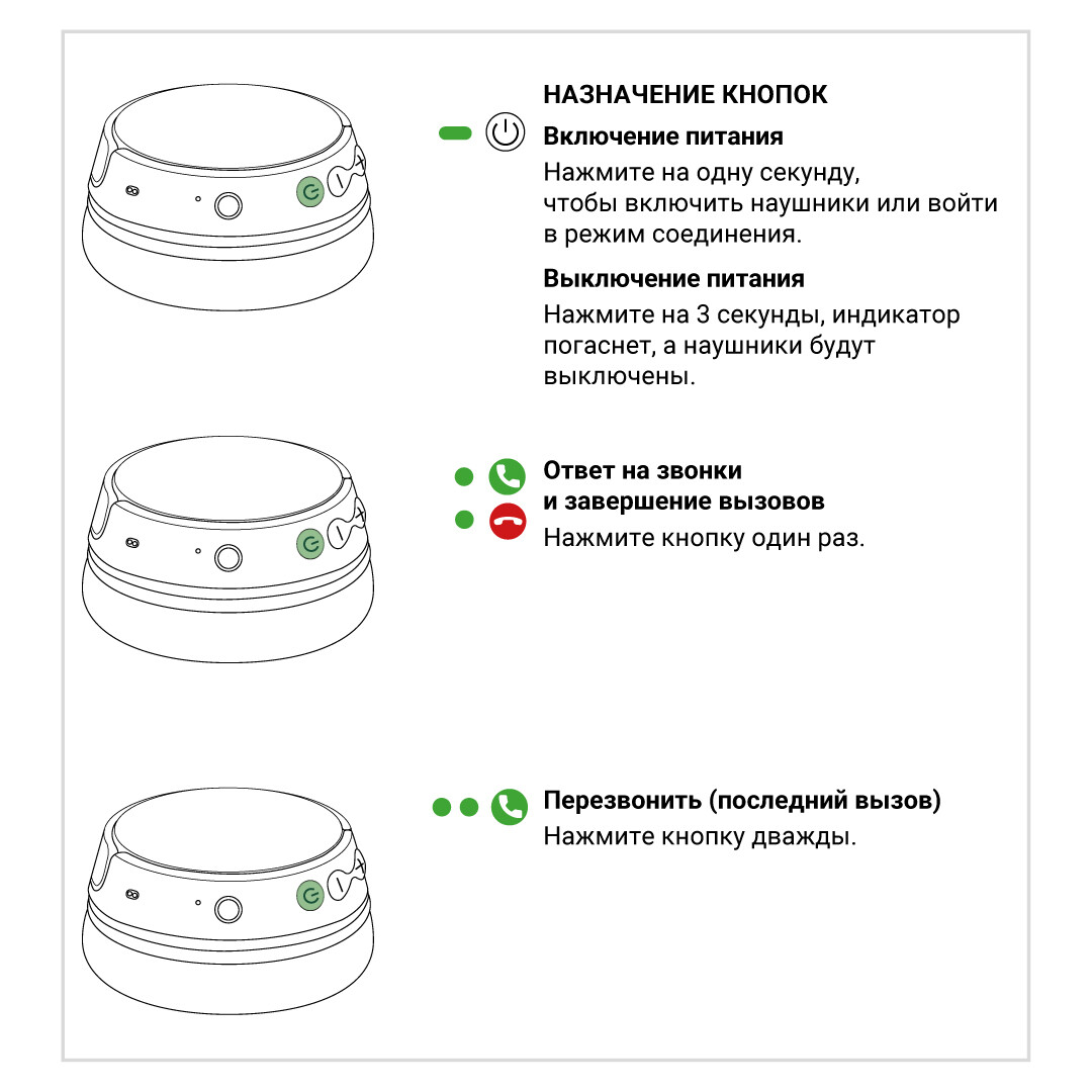 * Все функциональные кнопки и микрофон неактивны, когда наушники работают в проводном режиме.