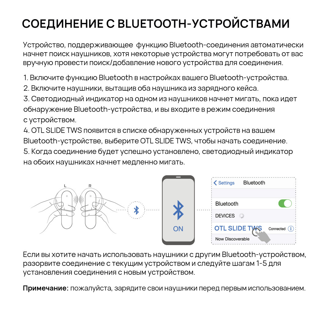 Простое подключение через Bluetooth V5.3 с радиусом действия до 10 м.